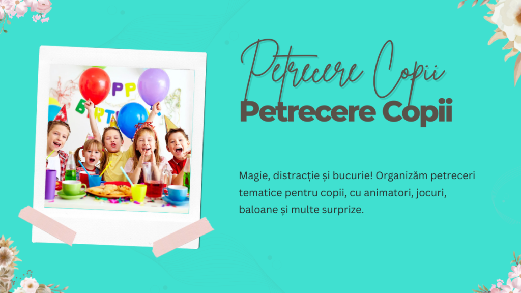 Copiii merită cele mai frumoase petreceri, pline de culoare, magie și distracție! Aqua Event organizează petreceri tematice pentru cei mici, cu personaje îndrăgite, animatori, jocuri interactive, candy bar și multe surprize. Creăm un univers de basm unde copiii și părinții se vor bucura de o atmosferă de neuitat. Fie că este vorba de o zi de naștere sau un alt eveniment special, Aqua Event aduce bucuria și energia necesară pentru o petrecere reușită!